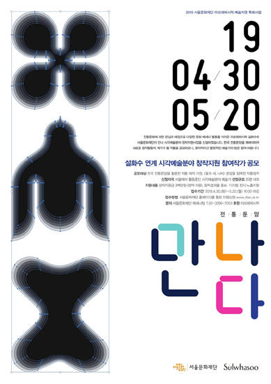 서울문화재단(대표이사 김종휘)은 한국 전통문양을 활용한 시각예술 작품을 제작할 예술가를 모집하는 ‘2019 설화수 연계 시각예술분야 창작지원 공모’를 4월 30일~5월 20일 접수받는다. 이번 공모는 서울문화재단과 아모레퍼시픽의 대표 브랜드 설화수와의 협력 사업으로, 전통문양에 담긴 아름다움과 의미를 현대적으로 재조명하고 시각예술분야의 다양한 창작활동 육성을 위해 기획됐다.