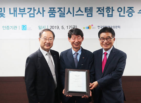 한국문화예술위원회(감사 김선출, 이하 예술위)는 5월 17일 글로벌 인증기관인 로이드인증원(Lloyd's Register Quality Assurance)으로부터 위험관리 및 내부감사품질에 관한 국제 공인인증을 취득했다고 밝혔다.