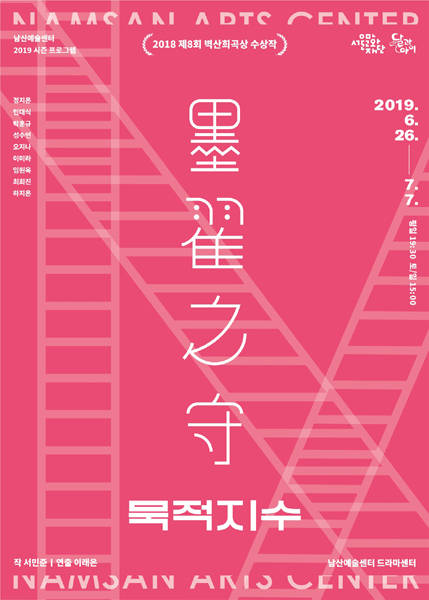 서울문화재단(대표이사 김종휘) 남산예술센터는 올해 시즌 프로그램 세 번째 작품으로 달과아이 극단과 공동 제작한 ‘묵적지수’(작 서민준/연출 이래은)를 6월 26일~7월 7일 공연한다.
