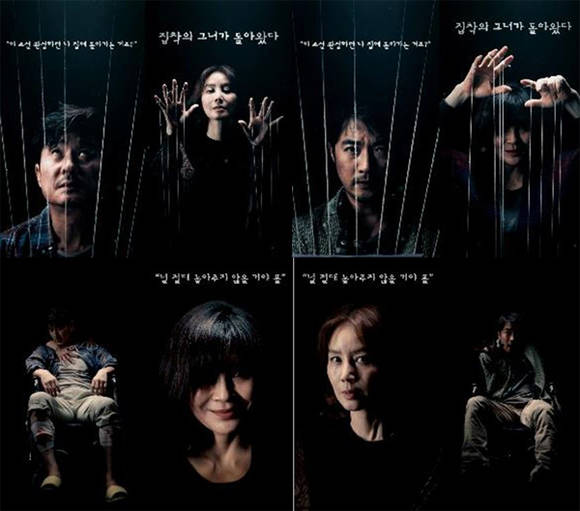 먼저 타자기를 활용한 무빙 포스터는 극 중 ‘폴 셸던’과 ‘애니 윌크스’의 관계를 보여준다. 타자를 치는 폴의 손가락에는 기다란 실이 묶여 있고, 그 실 끝엔 애니가 있다. 마치 마리오네트(Marionnette, 나무 인형에 줄을 달아 조종하는 인형)를 연상시키는 콘셉트는 작품 속에서 자신이 좋아하는 소설 속 주인공이 죽으면서 완결된다는 사실을 알게 된 애니가 부상당한 폴을 감금하고, 자신이 원하는 내용대로 소설을 집필하도록 종용하는 모습을 상징한다.