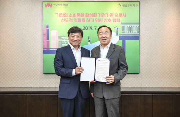 (재)세종문화회관(사장 김성규)과 (사)한국메세나협회(회장 김영호)는 7월 3일 세종문화회관에서 양 기관 관계자들이 참석한 가운데 기업 문화소비 활성화를 위한 업무협약을 체결했다. 양 기관은 이번 업무협약을 계기로 기업의 문화소비 활성화 및 건전한 접대문화 조성을 위해 다양한 협력을 진행할 예정이다.