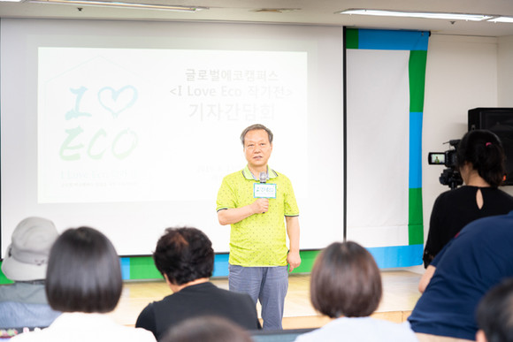 환경재단(이사장 최열)은 8월 13일 오전 환경재단 레이첼 카슨홀에서 글로벌 에코캠퍼스 설립을 위한 기금 마련 전시 ‘아이 러브 에코(I LOVE ECO) 작가전’ 기자간담회를 진행했다.