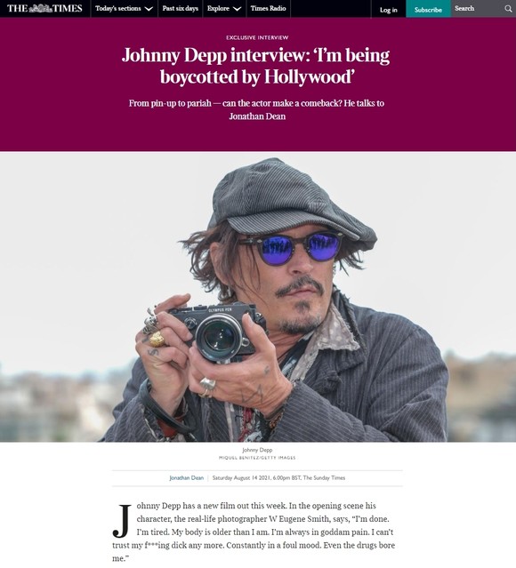 이번 ‘더 선데이 타임즈’와의 인터뷰에서 조니 뎁은 최근의 배우 활동에 관해 “할리우드가 나를 보이콧해 왔다”고 조심스럽게 말을 꺼냈다.