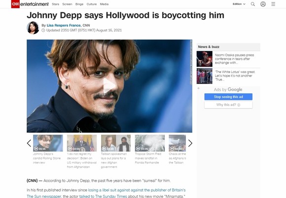► 'Johnny Depp says Hollywood is boycotting him' by CNN Entertainment