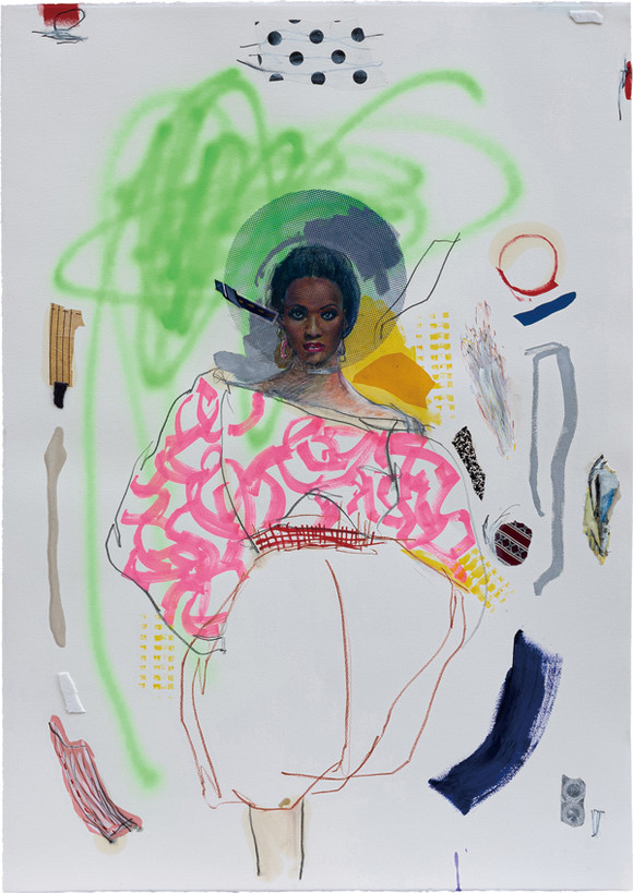 의식적으로 이미지를 많이 겹치려 한 것은 아닌데, 드로잉과 콜라주의 결합을 더 발전시킨 것이라 그렇게 보일 수도 있겠다. 작품이 담긴 액자는 내가 디자인해서 제작한 것이다. 작품 ‘Blue Boy’(2020)에서 처음 시도했었다. 분홍색의 경우, 내가 형광색을 좋아하는데 형광 분홍색만 사진에 왜곡 없이 잘 담긴다. 개인적으로 제일 좋아하는 색은 울트라마린(ultramarine)이다. 한편 ‘Duplicity’ 시리즈도 작품이 담긴 액자가 중요한데, 오래된 액자를 먼저 구하고 거기에 맞는 드로잉을 넣었다. 2016년부터 이런 방식의 작업을 지속하고 있다. ‘Duplicity’는 액자를 샀을 당시 그 안에 원래 들어있던 그림 위에 나의 작품을 겹쳐놓아 물리적으로도 이중성을 갖는다. ‘Duplicity 1’(2021)의 경우 액자에 담긴 종이에 드가(Edgar Degas)의 발레리나 그림에 관해 일본어로 적힌 글이 있어 그 위에 발레를 하는 인물상을 그린 드로잉을 올려놓았다. ‘글로리아(Gloria)’ 뮤직비디오에 등장했던 마야(Maya)의 인스타그램에 업로드된 사진을 보고 그렸다. 이 드로잉을 확대해 디지털 콜라주로 제작한 ‘Body & Soul 2’(2021)도 있는데 스페이스 캔 2층에 걸려 있다. 이 작품은 ‘소울: 세븐 앵글스’에도 전시되었었다.
