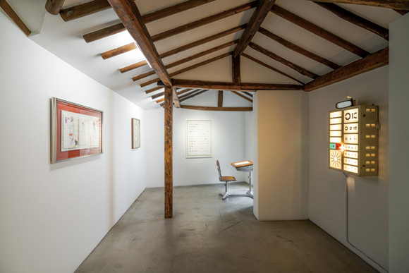 성경에 나오는 예수님의 이름과 칭호들을 알파벳 순으로 정리한 뒤 12개를 골라 드로잉했다. 이 작품 앞에 책상이 있고 그 위에 ‘진리 탐구 영역’이라고 적힌 시험지 같은 것이 올려져 있는데, 인생에서 중요한 질문에 대한 답을 찾기 위한 것이다. 마치 학생들이 시험문제를 푸는 것 같은 콘셉트라 거기에 맞춰 영어 노트에 영어 쓰기 연습하듯 그렸다.