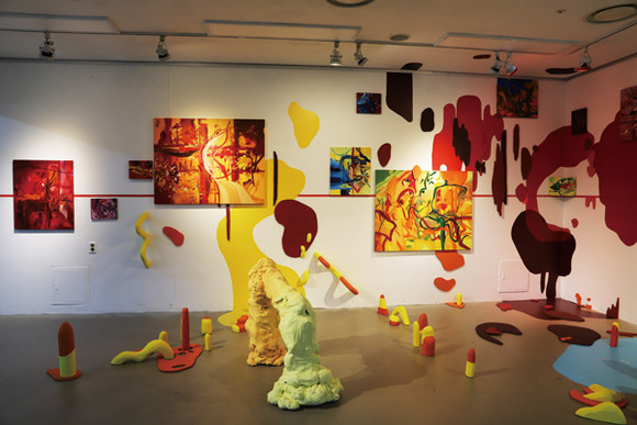 1. 나는 한 장소(전시장)에 일상을 소재로 한 추상적 형상들을 설치하는 작업을 하고 있다. 평면 속 조형요소들은 캔버스 밖 입체물로 연결되어 확장된 회화를 보여준다. 실제로 존재하는 구체적 대상을 바탕으로 하지만 추상화되었기 때문에 나의 회화(평면)와 설치(입체)는 실체와 다른 모습이다. 그것들을 통해 현실과 이상, 궁금함과 호기심이 공존하는 장소를 표현하는 한편 내가 경험했던 유의미한 장소를 관객에게 제시하고 싶다. 관객들이 내가 재현한 장소를 감상하기보다 체험했으면 좋겠다.