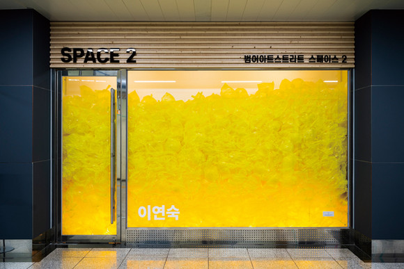 세 면이 유리인 오각형 형태의 전시장이기 때문에 새로운 시도가 필수적인, 쉽지 않은 공간인 것은 맞다. 작가들이 ‘커브2410’에 지원할 때 포트폴리오와 전시 기획안을 함께 제출했는데, 아무래도 첫 개인전이다 보니 자신들의 계획을 구현하기가 쉽지 않았을 것이다. 그래서 전문가 매칭을 진행해 공간 해석이나 작품 설치 등에 관한 조언을 받아 실질적인 도움이 될 수 있도록 했다. 네 작가 모두 처음 계획보다 확장된 결과물을 내놓을 수 있었다고 생각한다. 한편 전시장이 가진 특성이 팬데믹이라는 특수한 상황에 적응하는 데에 도움이 된 측면도 있다. ‘커브2410’를 비롯해 ‘아트랩범어’에서 진행되는 전시들은 지하도라는 장소성과 쇼윈도 같은 특성 덕분에 일상에서, 심지어 전시장에 들어가지 않아도 감상할 수 있다. 실제로 작품을 설치할 때도 이런 부분을 고려했다.