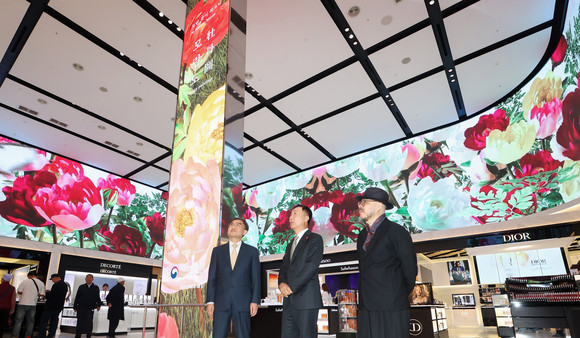 신세계스퀘어에서는 기존 콘텐츠인 ‘모란꽃이 피오니’를 30초로 편집하여 선보인다. 조선시대 궁중장식화인 <모란도 2폭 장지(障子)>를 소재로 부귀와 기복을 상징하는 모란을 통해 조선 왕실의 화려함과 당당함을 표현하였다. 신세계스퀘어 대형 스크린을 가득 메운 화려한 모란은 세계문화 속에 찬란하게 꽃 핀 우리 문화의 아름다움을 상징적으로 담아낸다.