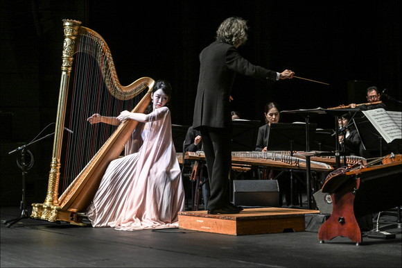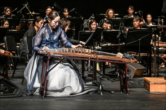 최근 케이팝 애니메이션 <케이팝 데몬 헌터스>가 전 세계적인 인기를 얻으며 한국적 리듬의 가능성을 입증한 가운데, 국악관현악이 그 흐름을 이어가는 새로운 기회를 만든 것이다. 김성진 지휘자의 지휘 아래 기타리스트 김우재, 하프 황세희, 가야금 유숙경이 협연한 하프 협주곡 〈달하노피곰〉과 황병기를 오마주한 〈깊은 밤〉은 경기시나위오케스트라 특유의 자유로운 즉흥성과 섬세한 서정을 한데 엮으며 관객들에게 깊은 울림을 남겼다. 특히, 하프와 가야금, 클래식 기타가 엮어내는 이질적이면서도 조화로운 사운드는 “K-컬처 다음 주자로서의 한국 음악”을 예고하듯, 전통과 현대, 동양과 서양의 경계를 유연하게 넘나들었다.
