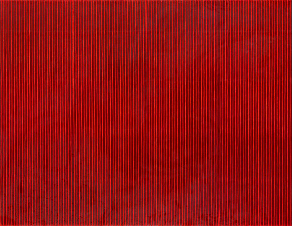 묘법 No.150218은 박서보가 오랜 세월 동안 탐구해온 묘법 회화로, 화면 전체를 채운 붉은 선들은 단순한 반복이 아니라, 작가의 호흡과 손의 리듬이 응축된 수행의 흔적이다. 1990년대 중반 이후 색채 묘법을 시작한 박서보는 2000년 도쿄화랑 개인전 이후 단풍의 색채에 감응해 원색을 도입하면서, 작가는 자연의 생명력과 정신적 치유의 개념을 화면에 담기 시작했다.