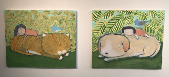또한 동물들과 함께하는 ‘낮잠’, ‘꽃 세 송이’, ‘단잠’, ‘허그 ’등의 작업은 모든 생명체의 작은 목소리에 귀 기울여 가족의 일원으로 서로 고독과 외로움, 상처를 치유하고 삶의 큰 낙이 되고 의지가 되는 관계와 교감을 통해 희생과 사랑, 배려와 관계에 대한 작가적 성찰을 담고 있다.