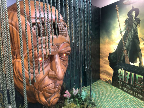 팝업 공간엔 계속해서 위키드의 대표 노래들이 울려 퍼지는데, 이 또한 영화 속 주인공이 된 듯한 몰입감을 높이는 감상 포인트다. 또 꽃이 만개한 공간, 글린다의 공간 등에선 달콤한 향까지 더해지면서 공간을 보는 데 그치지 않고 향으로 느끼며, 귀로 음악도 즐길 수 있는 점이 인상적이다. 한편 영화는 다음달 19일 전세계 최초로 한국 극장에서 개봉한다.