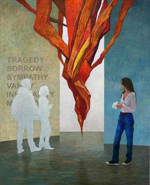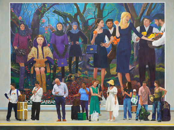 대표작 ‘거대한 일상’은 대형 명품 광고 이미지와 짐을 들고 기다리는 사람들의 일상적 풍경이 한 화면에 놓여있다. 주인공이 부재하고 원근법이 해체된 화면 속에서, 그는 현실과 이미지, 개인과 사회의 관계를 새롭게 인식시킨다. 이를 통해 ‘리얼리티’의 의미가 어떻게 규정되는지 묻고, 실체와 관념이 뒤섞인 현실을 회화적으로 드러낸다.