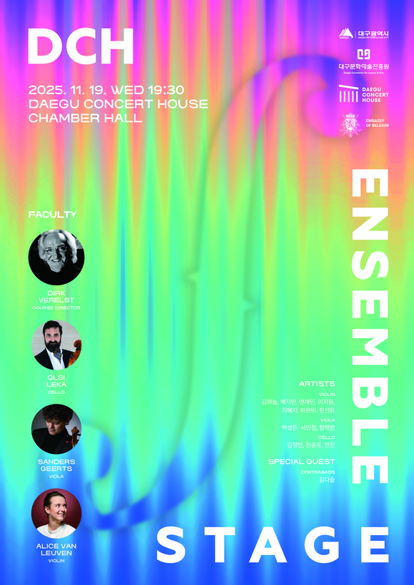 DCH 앙상블 스테이지는 대구콘서트하우스가 지역 청년 음악인들의 전문 역량 강화를 위해 마련한 실연 중심의 교육 프로그램이다. 이번 시즌에는 대구콘서트하우스 솔라시안 유스 오케스트라 출신을 포함해 만 35세 미만의 지역 청년 연주자 13명(바이올린, 비올라, 첼로 부문)이 선발되어, 해외 저명 패컬티와 함께 실내악 중심의 앙상블 교육을 받았다.
