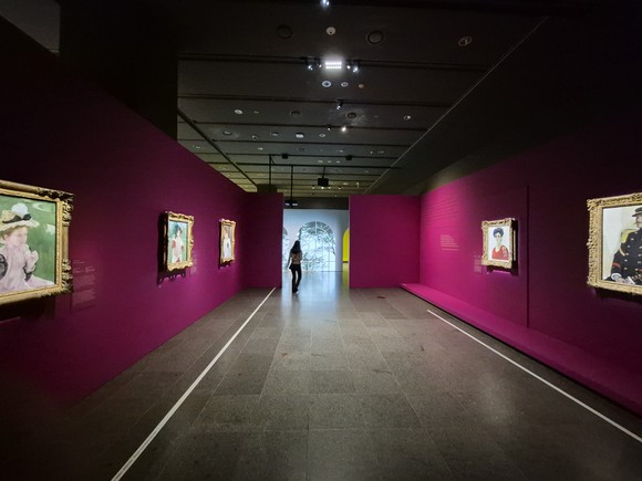 이번 전시에는 에두아르 뷔야르라는 화가의 작품이 총 6점이 전시됐다. 에두아르 뷔야르는 상징주의의 계열이면서 장식성이 또 강조가 된 나비파의 일원으로 활동 했다. 뷔야르의 어머니는 재봉사였다. 그래서 천의 패턴이라든지 벽지의 패턴, 테이블 보처럼 다양한 천의 질감들이 굉장히 세밀하게 묘사된 것은 어머니의 영향이다. 이번 전시 공간에서도 작품에서 보이는 그런 패턴들을 이용해 인테리어 효과를 냈다.