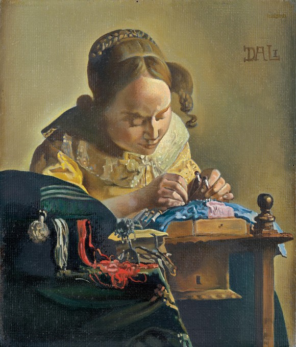 전시는 ‘레이스를 뜨는 여인’으로 시작한다. 이 작품은 17세기 네덜란드의 거장으로 꼽히는 요하네스 페르메이르의 작품을 모사한 것이다. 작품은 놀랍게도 살바도르 달리가 그렸다. 달리는 조연 현실주의의 선구자로 왜 이런 작품을 달리가 그렸나 라는 것에 대해서 먼저 의문을 품을 수 있다. 또 한 가지 재미있는 점은 이 작품은 로버트 리먼이 직접 주문해서 리먼 컬렉션으로 수집된 작품이라는 것이다. 로버트 리머는 그것을 알고 리먼 컬렉션에서 아직 페르메이르 작품을 수집하지 못했기 때문에 이 작품의 모사본을 그려준다면 네덜란드 학파를 공부하고 싶은 사람들에게 좋은 자료가 될 것이라고 주문의 의미를 설명을 하고 있다.