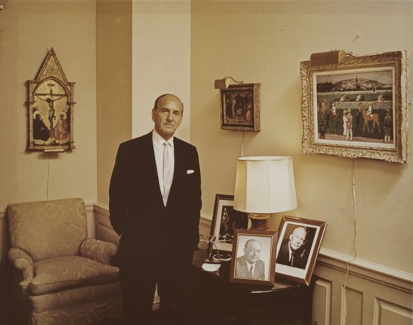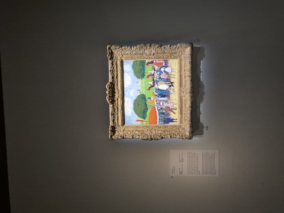 키스 반 동겐의 ‘경마장에서’는 1950년대 작품이다. 19세기 중후반에 나타났던 고급 취미 중의 하나가 경마였다. 특히 프랑스 북부 지역의 독일이나 토르빌과 같은 곳에서 경마장들이 많이 만들어졌고, 경마를 배경으로 하는 그림들이 많이 그려졌다. 로버트 리먼도 경마 애호가였다고 한다. 그래서 로버트 리먼이 사망을 했을 때 그가 직접 관리하던 말이 거의 50마리에 이를 정도로 굉장히 경마를 좋아했던 사람이었고, 이 작품은 아니지만 키스반 동겐이 그린 다른 경마장 그림을 리먼 브라더스 사무실에 걸어놓았고 그 안에서 찍은 사진도 있다.