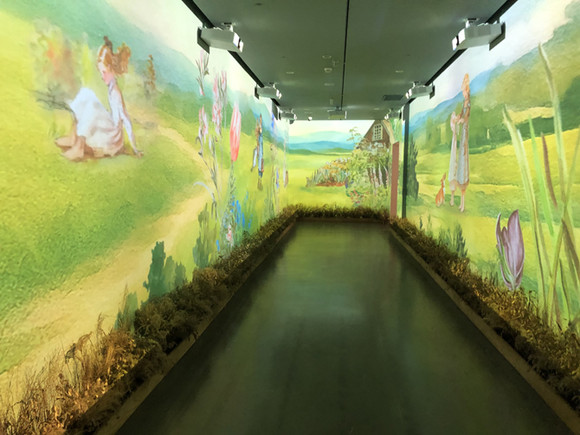 전시의 말미에 이르러서는 또 한 번 거대한 정원이 펼쳐진다. 앞서 전시장 초입부에서 미디어아트로 타샤의 정원을 만났다면, 이번엔 아날로그 방식으로 직접 전시장에 자연을 구현해놓았다. 이를 통해 관람객은 실제 정원을 거니는 느낌을 받으며 곳곳에 설치된 드로잉 등 작품을 감상할 수 있다.