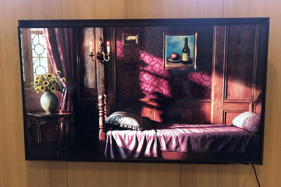 로비의 또 다른 한켠에 설치된 홍 작가의 ‘브랫’ 또한 익숙해 보이지만 뭔가 달라 보이는 화면을 통해 친숙함과 낯설음을 동시에 느끼는 감각을 제공한다. 과거 인기 게임 ‘프린세스 메이커 2’의 화면으로, 해당 게임은 1993년 일본 가이낙스가 출시한 육성 시뮬레이션 장르의 시초다. 플레이어는 소녀가 18세가 될 때까지 돌보는데, 게임에서 딸이 가출하는 상황도 발생한다. 이때 소녀가 사라진 텅 빈 방이 등장하는데, 홍 작가는 이를 리마스터링해 로비에 디지털 화면으로 소환해 놓았다. 빈 방은 게임을 모르는 사람이 보면 마치 로비 인테리어 디자인의 한 요소로 생각할 법도 하다.