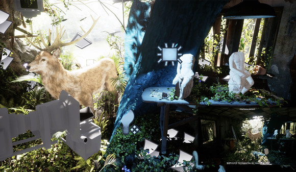 전쟁과 전염병, 경제 위기가 반복되는 시대에 작가는 ‘보존’이라는 문제에 주목해왔다. 완벽해 보이는 디지털 환경은 국가 정보 시스템 화재 같은 사건을 통해 얼마나 허술하고 불안한지 드러났다. 작가는 디지털 정보가 모두 복구 가능할 것이라는 믿음이 과연 타당한지 질문한다. 오류를 거니는 산책자 전시장에 풀어놓은 가상의 저장소는 물리적이고 전통적인 방식이 더 안전한 대안일 수 있다는 가설을 실현한 프로젝트다.