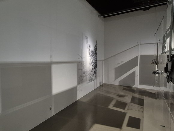 2층 제2전시실에는 참여 작가 4명의 작업들이 펼쳐져 있다. 베니스전시에서 작업이 작가들의 생각이나 고민들이 응축된 하나의 결과물이었다면 그런 고민들을 이번 귀국 전에서는 풀어놓으려 한다. 그래서 전시는 마치 작가들이 다양한 방식으로 생각했던 사고의 경로를 펼쳐놓은 전개도처럼 보인다.
