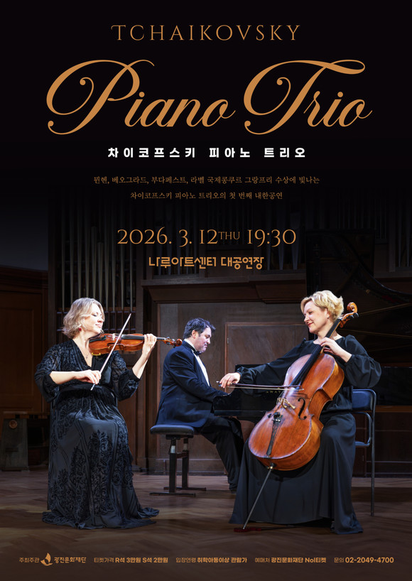 (재)광진문화재단(이사장 김경호)은 오는 3월 12일(목) 오후 7시 30분 나루아트센터 대공연장에서 러시아 정통 실내악 앙상블 <차이코프스키 피아노 트리오>의 첫 내한공연을 개최한다.