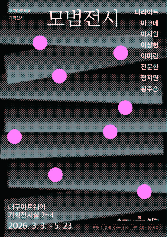 대구문화예술진흥원 문화예술본부(본부장 방성택)가 운영하는 대구아트웨이는 올해 제1차 기획전시 <모범전시>展(전)을 오는 3월 3일부터 5월 23일까지 대구아트웨이(이하 아트웨이) 기획전시실 2~4실에서 개최한다. 이번 전시는 2026년도 입주작가로 선정된 8인을 공식적으로 소개하는 첫 자리다.