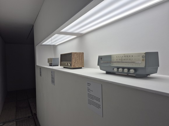 전시 제목인 ‘트라이글로시아(Triglossia)’는 하나의 공동체 안에서 서로 다른 세 언어가 정치·사회적 이유로 동시에 사용되는 사회언어학적인 현상을 가리킨다. 작가는 이 개념을 이론적 틀로 삼아 근대화와 식민지화의 과정 속에서 핵심 대중매체였던 라디오가 개인과 공동체에게 어떤 방식으로 기능해왔는지 질문한다. 전시된 라디오 중 하나는 1959년 출시된 금성사의 첫 제품이다.