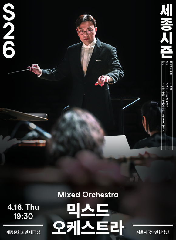 세종문화회관(사장 안호상)은 오는 4월 16일(목) 세종문화회관 대극장에서 서울시국악관현악단(단장 이승훤) 2026 <믹스드 오케스트라>를 선보인다.