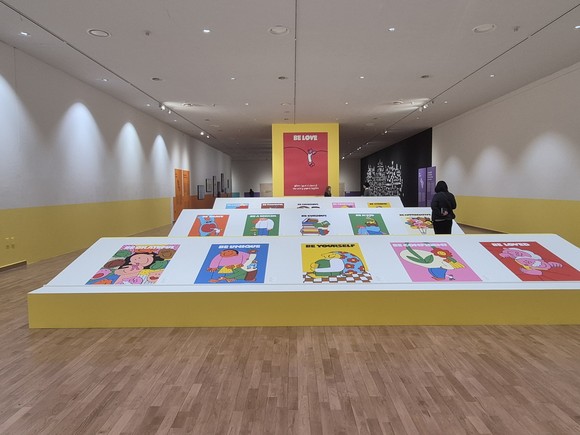 먼저, 일러스트레이터 아야카 후카노의 ‘함께 엮는 이야기’는 감정을 짧은 문장과 강한 색으로 표현했다. ‘일촌법사’를 바탕을 16개의 장면 + “BE…” 형식의 메시지 구성으로 문장은 설명이 아닌 이미지와 함께 리듬감을 선사한다.