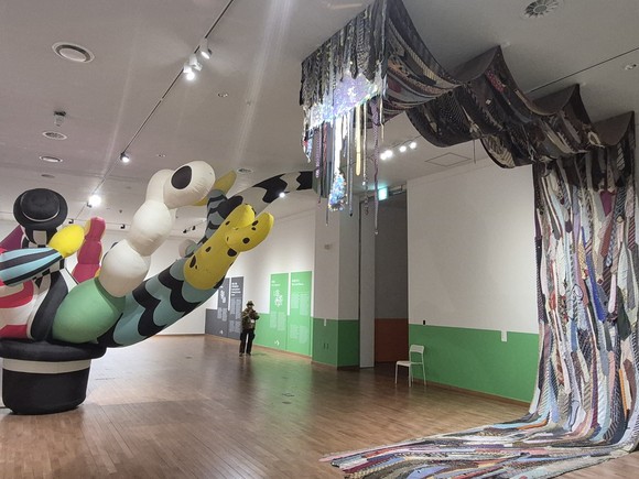 이정윤 작가의 ‘바리와 무니’는 한국 설화 ‘바리공주’를 바탕으로 ‘버려짐→돌봄→귀환’의 서사를 공간 장면으로 풀어냈다. 바리를 ‘씨앗 같은 존재’로 설정, 이동과 변화를 따라가는 이야기 구성을 보여준다. 이정윤 작가는 공기 조형, 설치, 드로잉을 통해 작품이 공간에서 작동하는 방법을 탐구한다.